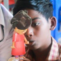Los niños en nuestras escuelas Amrita Vidyalayam están aprendiendo cómo construir robots. Usando el lenguaje de programación Scratch de MIT, administran todo el proceso de diseño de un diorama robótico. Desde la planificación previa en papel hasta las tuercas y tornillos técnicos, los niños usan sus creaciones para contar la historia de la protección de los elefantes en la naturaleza.