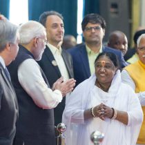 El Honorable Primer Ministro de la India y el Secretario General de la ONU entregaron a Amma un premio especial en un prestigioso encuentro que tuvo lugar ayer en Delhi. Se trata de un reconocimiento por haber realizado la mayor contribución económica a Swacch Bharat Abhiyan, la campaña de limpieza más importante del Gobierno de India.