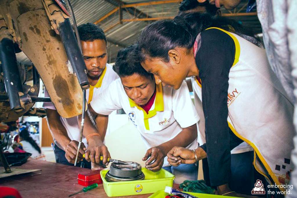 Hasta la fecha, más de 800 jóvenes han sido capacitados en áreas tribales y aisladas de los estados de Kerala, Chhattisgarh, Odisha, Tamil Nadu y Jharkhand. Amrita-PMKVY ha establecido nueve centros de capacitación y ofrece cursos de corta duración en las siguientes áreas: fontanería general, técnico de servicio automotriz, sastre autónomo, asistente de servicio general (atención médica) y operador doméstico de entrada de datos.