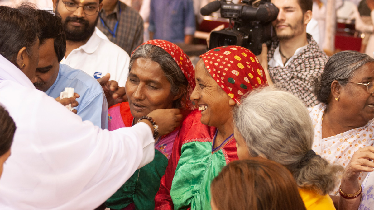 Amma explicó que la pobreza en las zonas rurales es un problema clave que hay que abordar para avanzar como sociedad, especialmente porque es la gente de allí la que cultiva la mayor parte de nuestros alimentos. Amma lleva más de 35 años estudiando la vida de las personas en pueblos de toda la India y del mundo. Ha experimentado que cuando miramos superficialmente a los pueblos desde lo alto, no encontramos soluciones holísticas. Necesitamos ir al nivel del suelo y comprender los problemas desde su punto de vista.