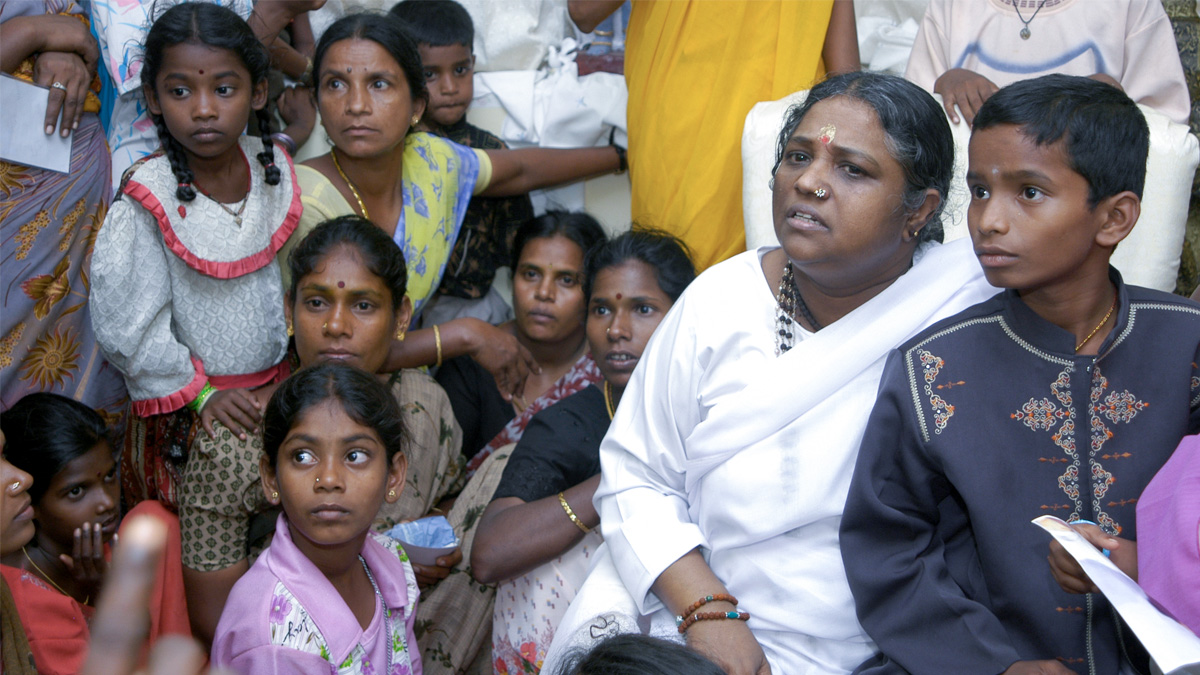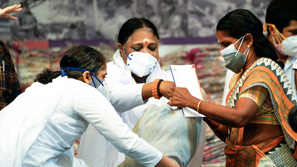 Amma dijo: "En 2005, creamos el programa AmritaSREE. Aquí, el dinero mancomunado se entregó como subvención. A través de esto, se crearon grupos de autofinanciamiento para ayudar en la creación de empresas y la formación profesional. Estos grupos no solo pudieron llegar a ser autosuficientes, sino que incluso hicieron que todas sus aldeas enteras lo fueran".