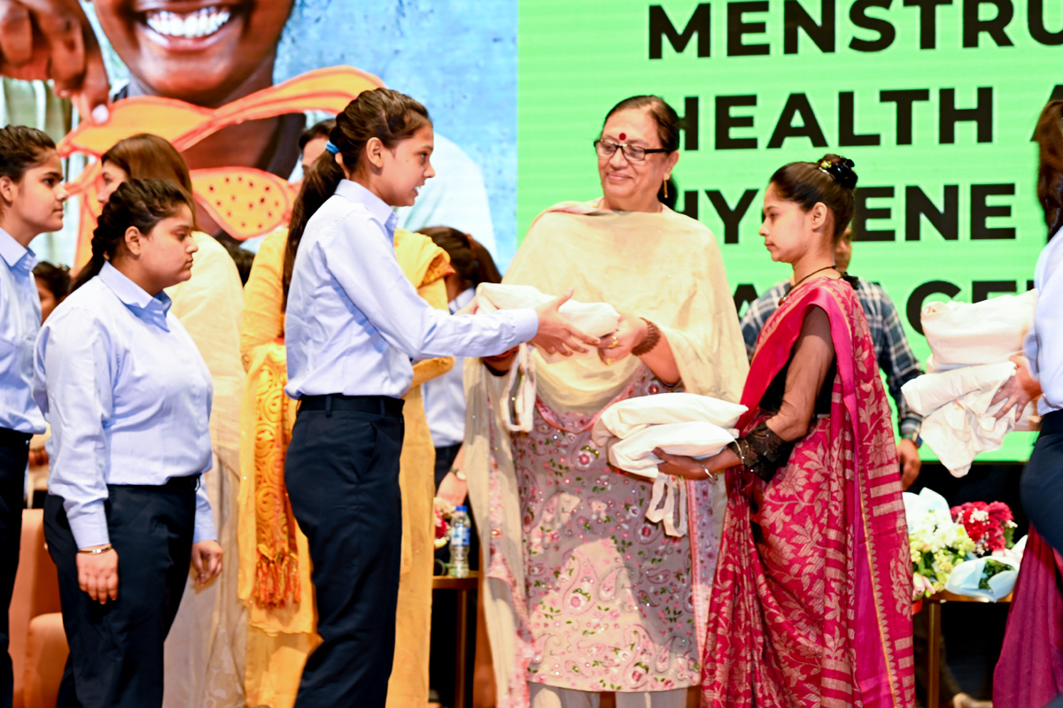 La Sra. Seema Trikha, miembro de la Asamblea Legislativa (MLA), distrito electoral de Badhkhal, Faridabad, también se dirigió a la audiencia: “Toda mujer, independientemente de su origen social y económico, merece tener acceso a compresas sanitarias y una higiene menstrual adecuada. En las escuelas, es fundamental que el personal docente y no docente promueva la conciencia sobre la higiene menstrual. Las ONG, los hospitales, los trabajadores de Anganwadi y el gobierno de Haryana deberían colaborar para encabezar esta iniciativa. Asegurémonos de que ninguna mujer se quede atrás y juntos creemos una sociedad donde la higiene menstrual sea prioritaria y accesible para todos”.