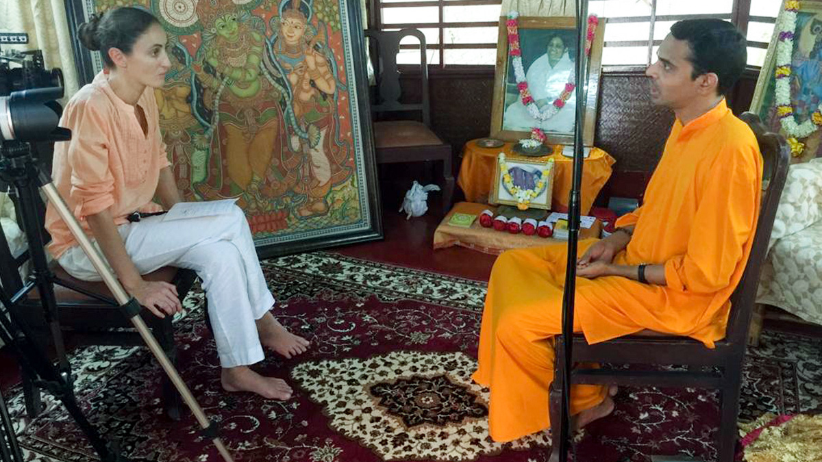 "Y fue entonces cuando me di cuenta de que tenía que compartir sus historias. Entonces, la noche antes de irme, le pregunté a Amma directamente: '¿Puedo hacer una película? Me gustaría hacer una película sobre estas personas que trabajan a tu alrededor ofreciendo sus corazones.' Y Amma dijo: 'Está bien'".